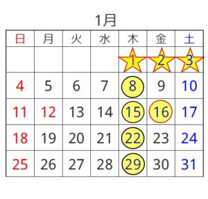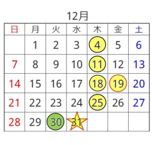 12月・1月の定休日、年末年始のお休みのお知らせです。