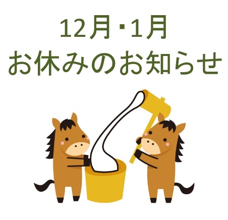 12月・1月の定休日、年末年始のお休みのお知らせです。